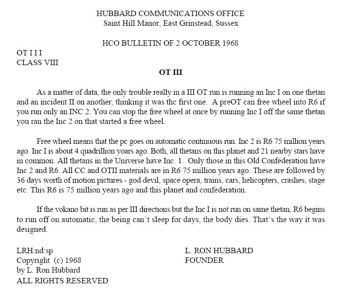 L. Ron Hubbard HCO Bulletin on OT III (2 October 1968)